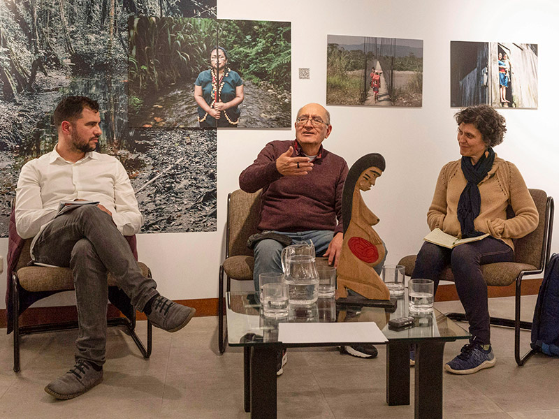 El cierre de la muestra Amazonía: narrativas desde los territorios contó con líderes, actores sociales y especialistas en asuntos ambientales. Entre todos abordaron la actualidad en torno al Sínodo Amazónico de 2019. La periodista Patricia Rosety moderó el coloquio, que contó con cuatro participantes. Los invitados pusieron el foco en cómo se puede reforzar el papel de la Iglesia como catalizador de la conciencia ambiental y el respeto por la diversidad cultural. “Si algo caracteriza a la Amazonía aparte de ser el pulmón del planeta es el expolio, es la codicia de extranjeros y nacionales”, señaló en su intervención.